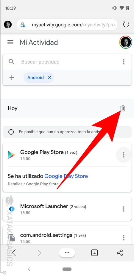 - Desde aquí, puedes borrar elementos individuales o todo el historial.